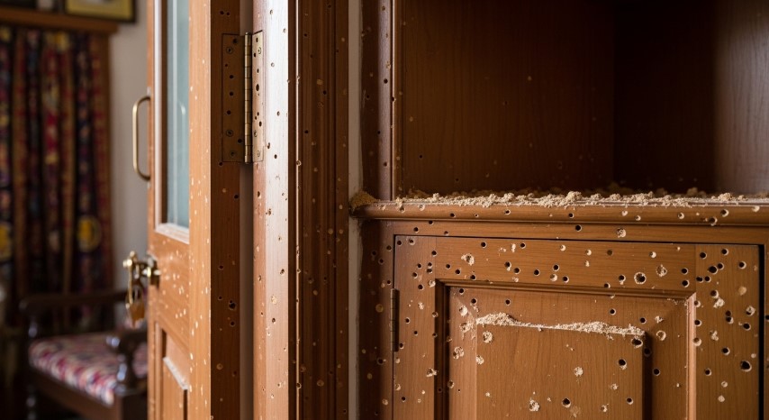 Noticing tiny holes in your wooden furniture? Seeing fine powder-like dust falling from doors, cupboards, or wooden frames? That’s not just normal wear and tear — it could be a wood borer infestation.
